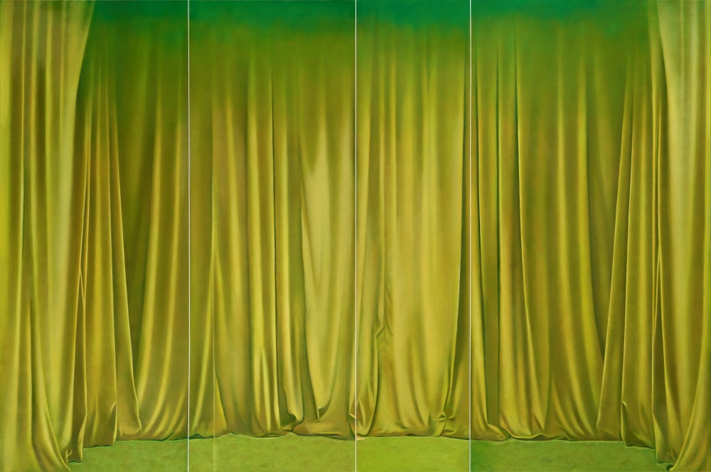 Her work is secretive and as a result enticing. She often shows only parts of faces, closed curtains: What colour are the woman’s eyes? What is on the other side of the curtains? And for that matter, which side of them are we standing on - exposed in front or hidden behind?