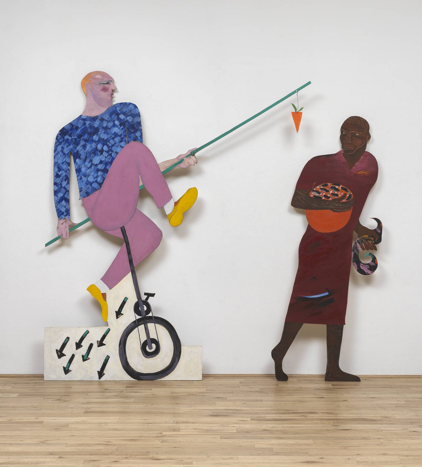 There are many works by North West artists included, such as Red Riding Hood by Amanda Holiday, who grew up in Wigan before becoming involved in the British Black Arts Movement; a photomontage by Liverpool-born Linder; Lubaina Himid’s The Carrot Piece, a 2D sculpture showing a white man using a carrot on a string to tempt a Black woman; and Chila Kumari Singh Burman’s Splatter, created by pressing her painted body to the paper.
