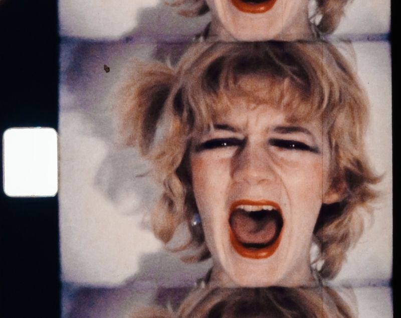 Meanwhile, in her 1977 video 3 Minute Scream, Gina Birch fills an entire Super 8 film cartridge with her high-pitched screaming.